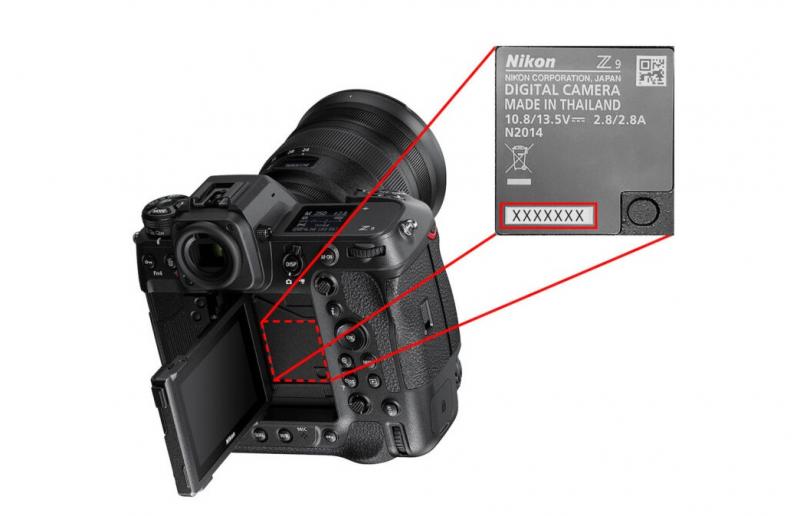 Чтобы найти серийный номер вашей камеры Z 9, откройте монитор камеры на задней панели камеры, и серийный номер продукта будет представлять собой 7-значный номер, напечатанный на этикетке, прикрепленной к корпусу камеры.
